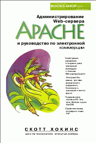Apache.Администрирование Web сервера Издательство: Диалектика, 2001 г. Мягкая обложка, 336 стр. ISBN 5-8459-0212-6 Тираж: 5000 экз. Формат: 70x100/16 Эта книга задумывалась как достаточно полное справочное руководство по Web-серверу Apache. Изложенный в ней материал предполагает определенный уровень компьютерной грамотности, но знания сетевых технологий при этом не требуется. Несмотря на то, что основная проблематика книги лежит в области электронной коммерции, в приложениях затронуты самые разнообразные проблемы и информация, необходимая для создания и функционирования Web-сервера. Это проблема соответствия имен и IP-адресов, детали протокола TCP/IP и синтаксис регулярных выражении. Кроме того, в перспективе Web-администрирования затронуты темы создания системы электронных платежей и взаимодействия с базами данных.